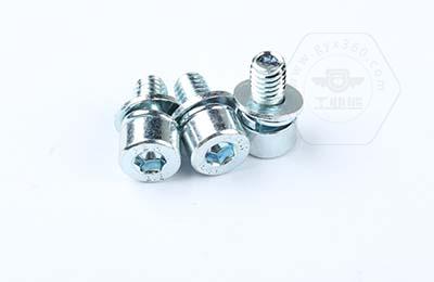 8.8級鍍環(huán)保藍(lán)白鋅 內(nèi)六角不滾花圓柱頭帶平彈墊組合螺釘 內(nèi)六角三組合的產(chǎn)品圖片