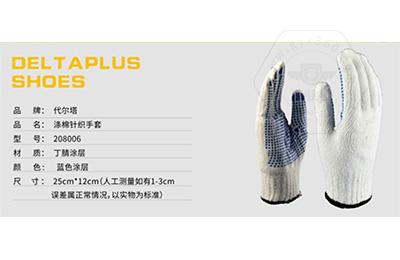 商品名稱:代爾塔 PVC點膠 滌棉 線手套 工作 勞保手套 防滑耐磨損抗撕裂 208006 白色/藍(lán)色9#