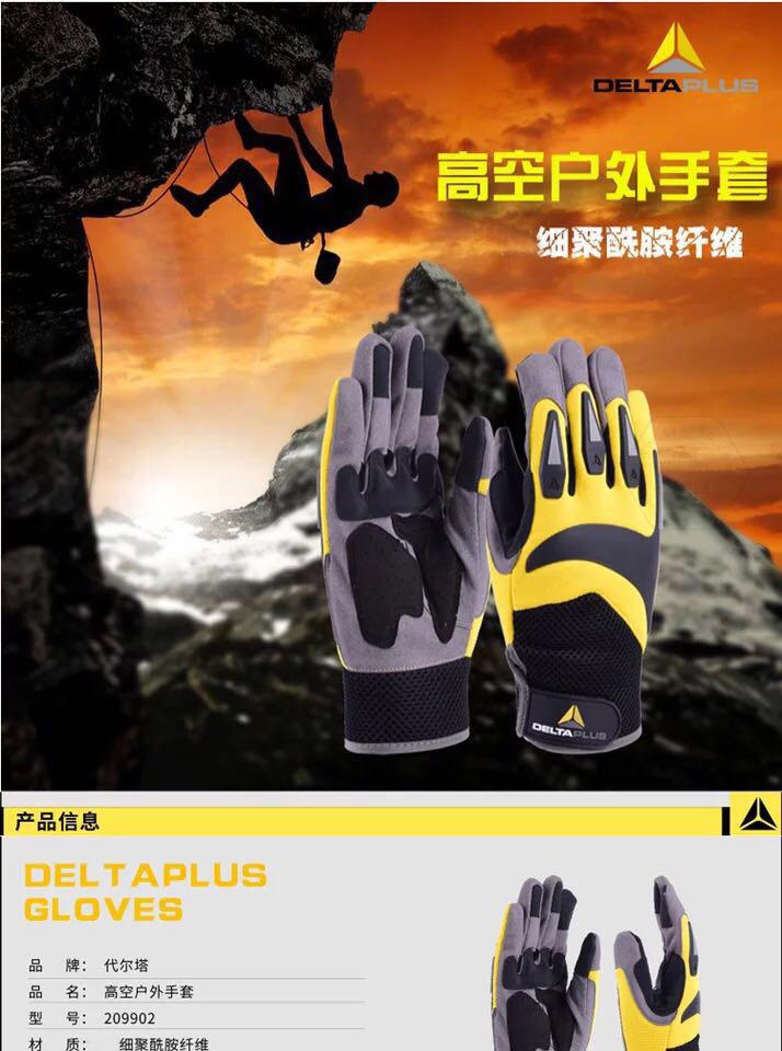 商品名稱:代爾塔 高空戶外運(yùn)動(dòng)手套 適用于攀巖繩索作業(yè) 耐磨防護(hù)透氣舒.適安.全騎行 209902 黃/黑色 一副(2只)