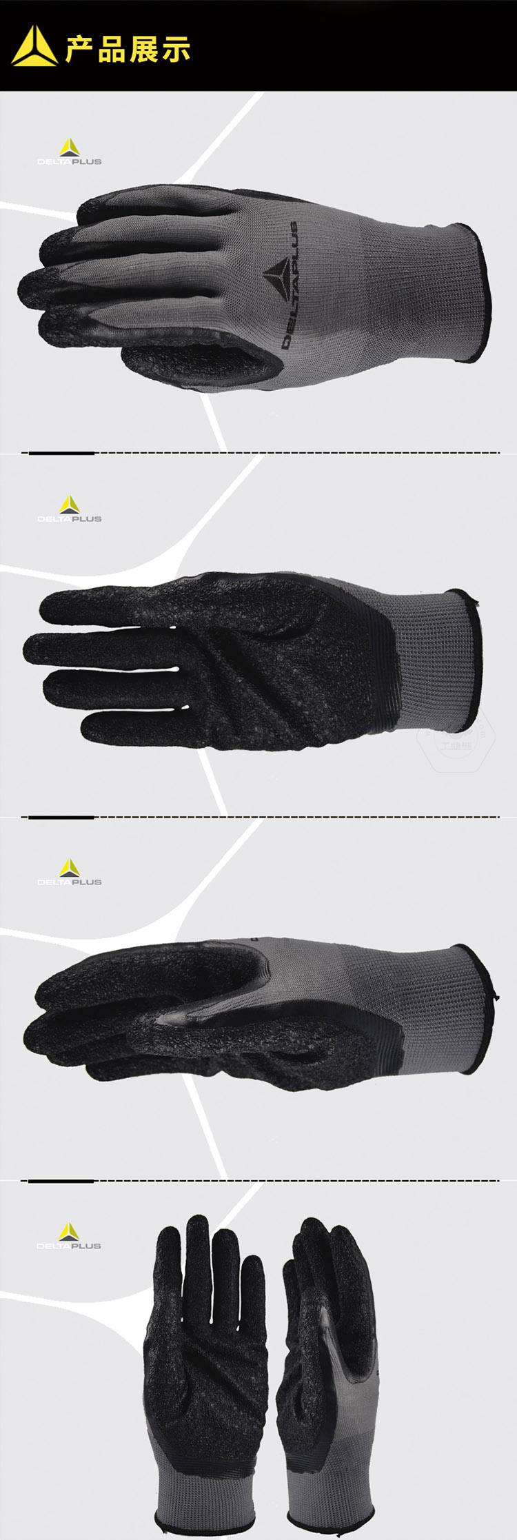 商品名稱:代爾塔 乳膠涂層手套 滌綸防滑 透氣 彈性 抓握性強(qiáng) 耐磨抗撕裂 201630 黑色